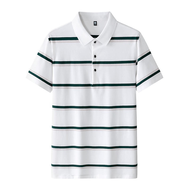 Men’s Summer Half-Sleeve for Polo Shirt Casual Business Trendy Solid Striped Lapel High Anti-Pilling Pure Cotton Golf T-Shirt