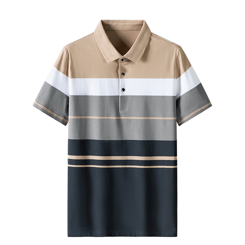 Men’s Summer Slim-Fitting Cotton for Polo Shirts Korean Style Short-Sleeved Striped Lapel Trendyy Personalized Knitted Youth T-S