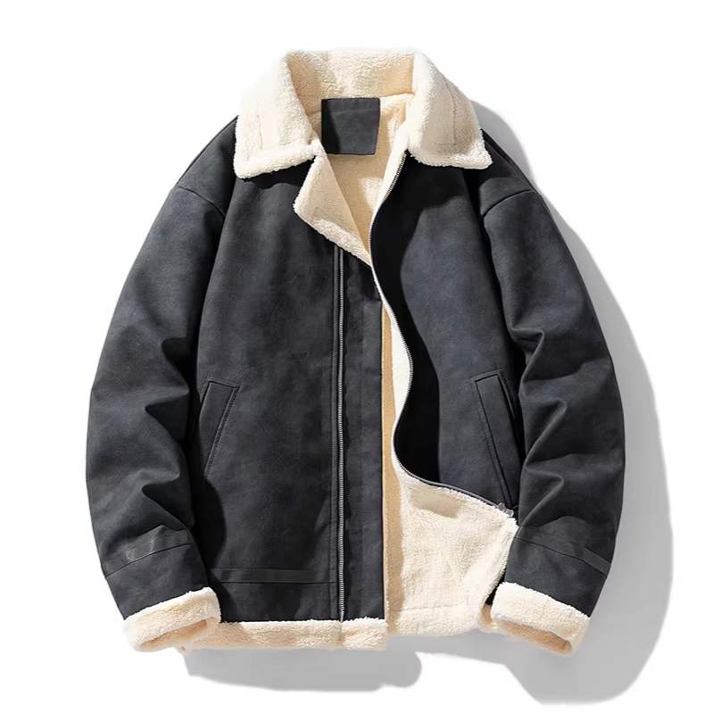 Men’s Cow Print Leather Jacket Custom Stand Collar Yarn Dyed Denim Fabric Warm Material Motorcycle Style Direct Manufacturer