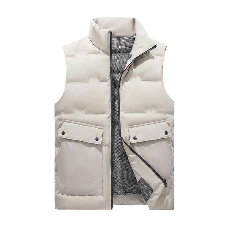 2024 ODM Autumn Winter Men’s Fashionable Vest Young Middle-Aged Solid Color Warm Casual Nylon Shell Zipper Puff Bomber Jacket