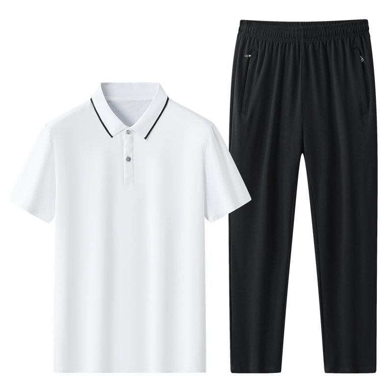 Men’s Summer Casual Sports Suit Pure Cotton for POLO Shirt Short-Sleeved T-Shirt Fashionable Solid Plus Size for Middle-Aged Eld