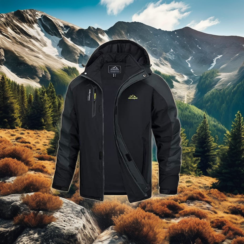 Men’s Black Zipper Closure Puffer Jacket Soft Shell Print Sportswear for Outdoor Winter Sports Climbing XL Size