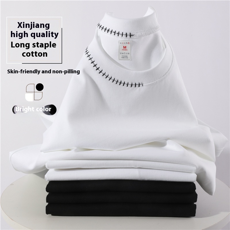 Summer New Product 100% Cotton 240g Long-Staple Right-Shoulder Open Cuffs Solid Casual Short-Sleeved T-Shirt for Men Women Pure