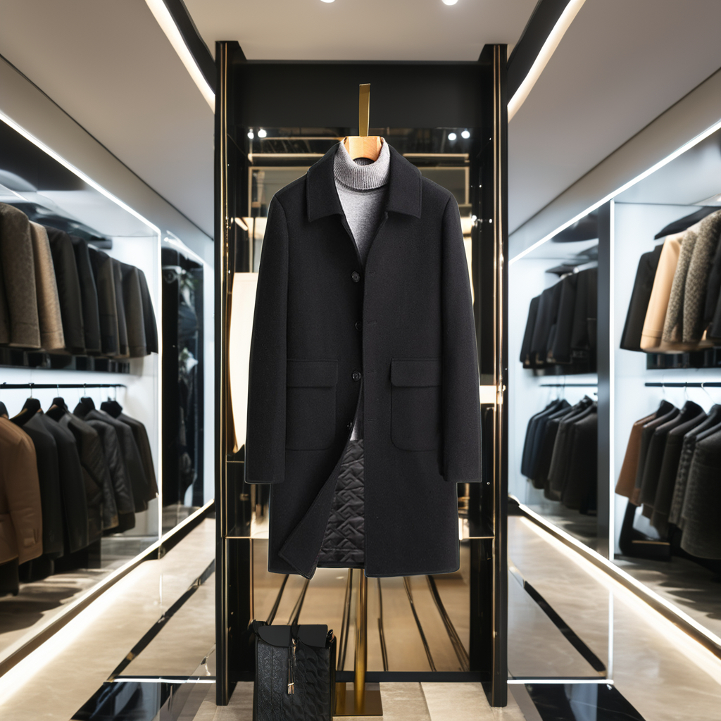 Autumn Winter Men’s Casual Mid-Length Woolen Coat Single Breasted Windbreaker Knee-Length Non-Double-Sided Cashmere Finished