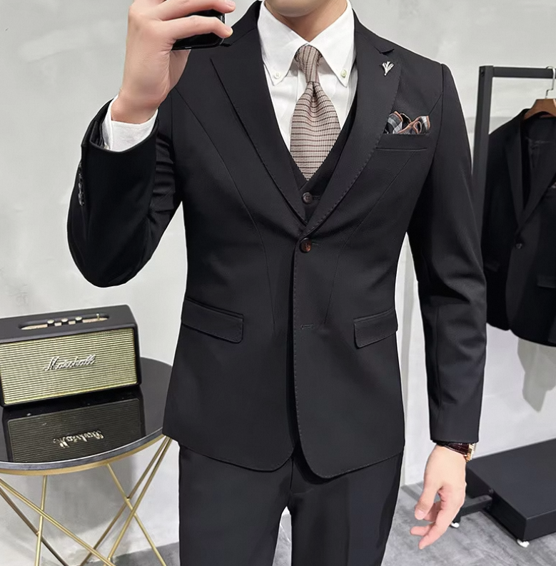 Single Breasted Groom’s Wedding Dress Men Slim Fit Business Suits 3 Pieces Blazer Plus Size Solid Color Men’s Suits