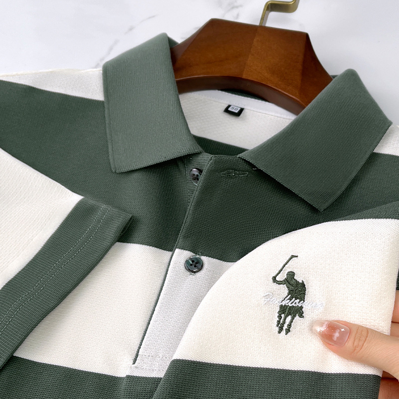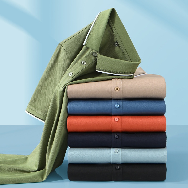 Men’s High-End XL Ice Silk for Polo Shirt Business Casual Short Sleeve T-Shirt Explosion Print Design in Solid Colors Anti-Pilli