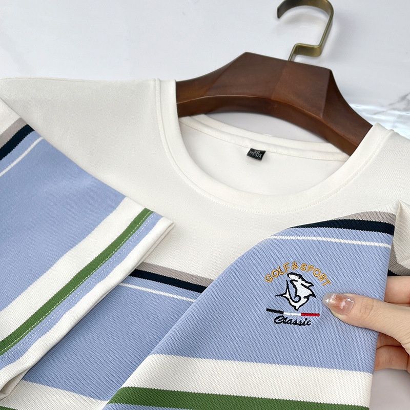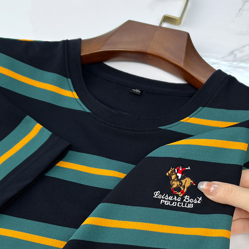 Short Sleeve Anti-Wrinkle T-Shirt with Horizontal Striped Solid Knitted Fabric Blank Embroidered Design