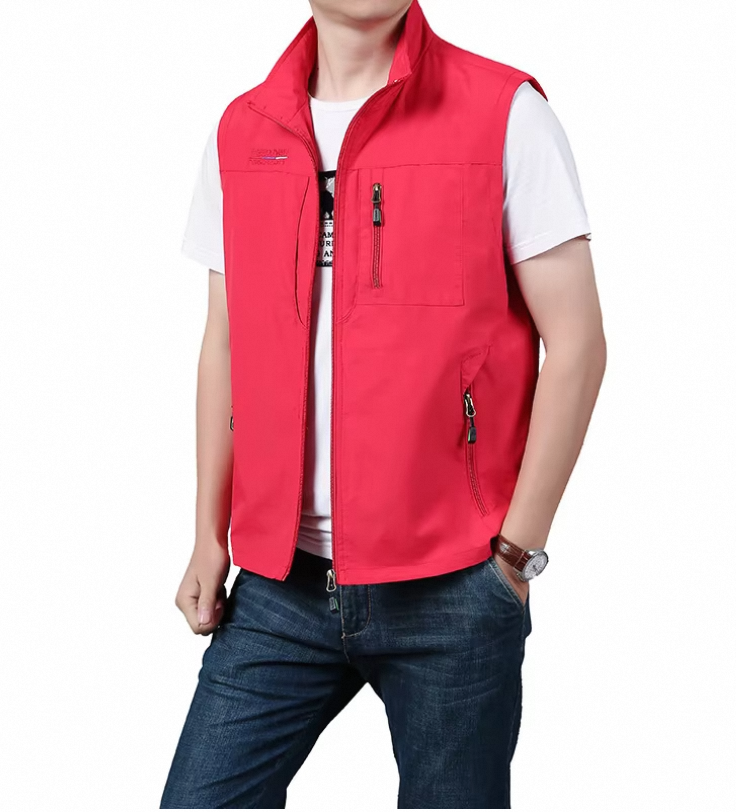 Korean Fashionable Casual Sports Waistcoat Men’s Two-Open Cotton Vest with Stand Collar and Sleeveless Top for Outer Wear