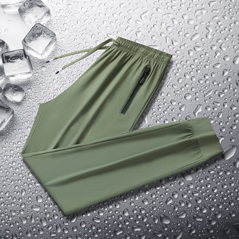 Men’s High Quality Ice Silk Pants XL Plus Size Loose Casual Summer Sports Long Pants Breathable Waistband Cool Lightweight Flat