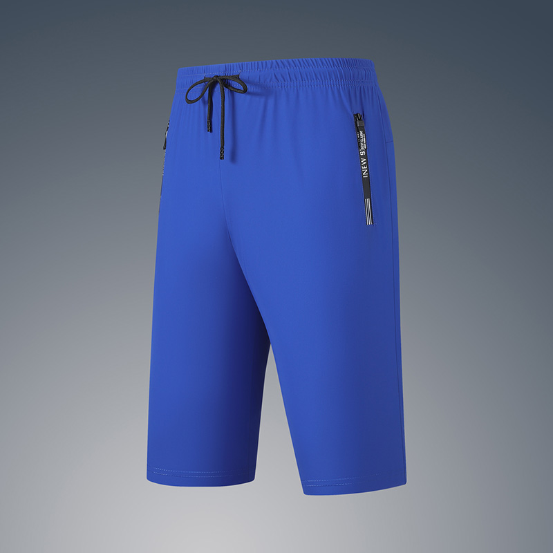 Men’s Cropped Pants Lightweight Ultra-Thin Ice Silk Sports Simple Casual Trendy Straight Flat Elastic Waist English Label