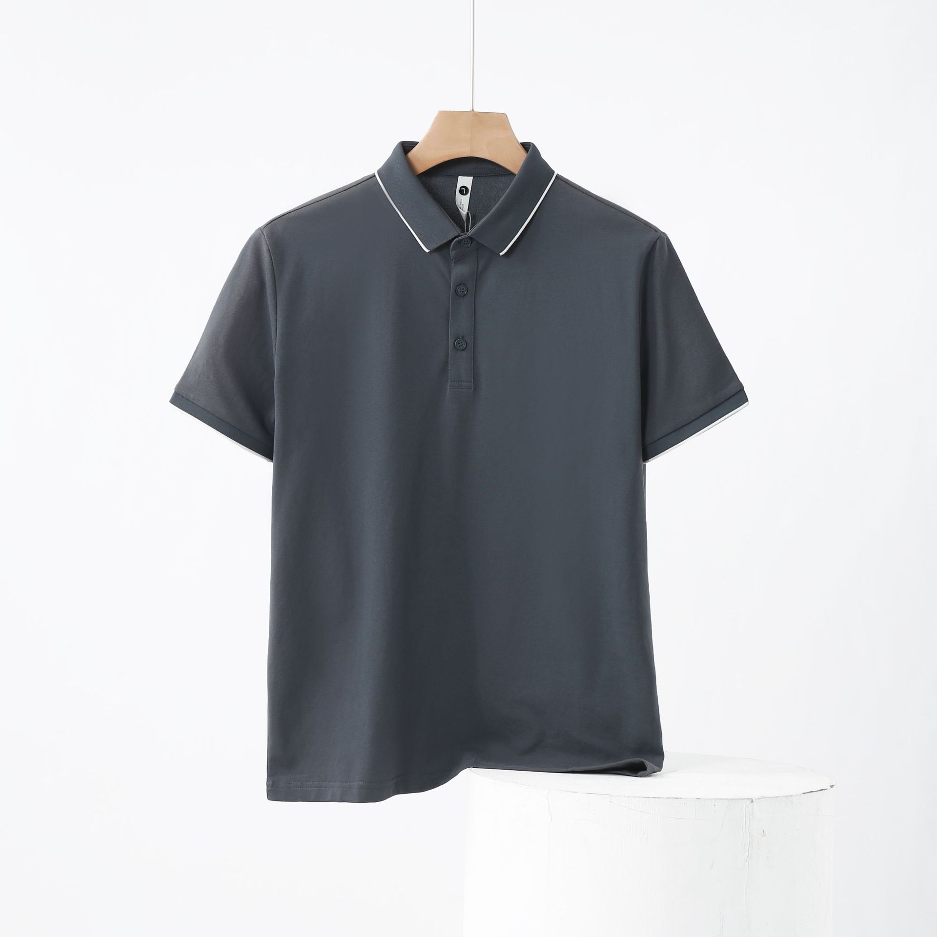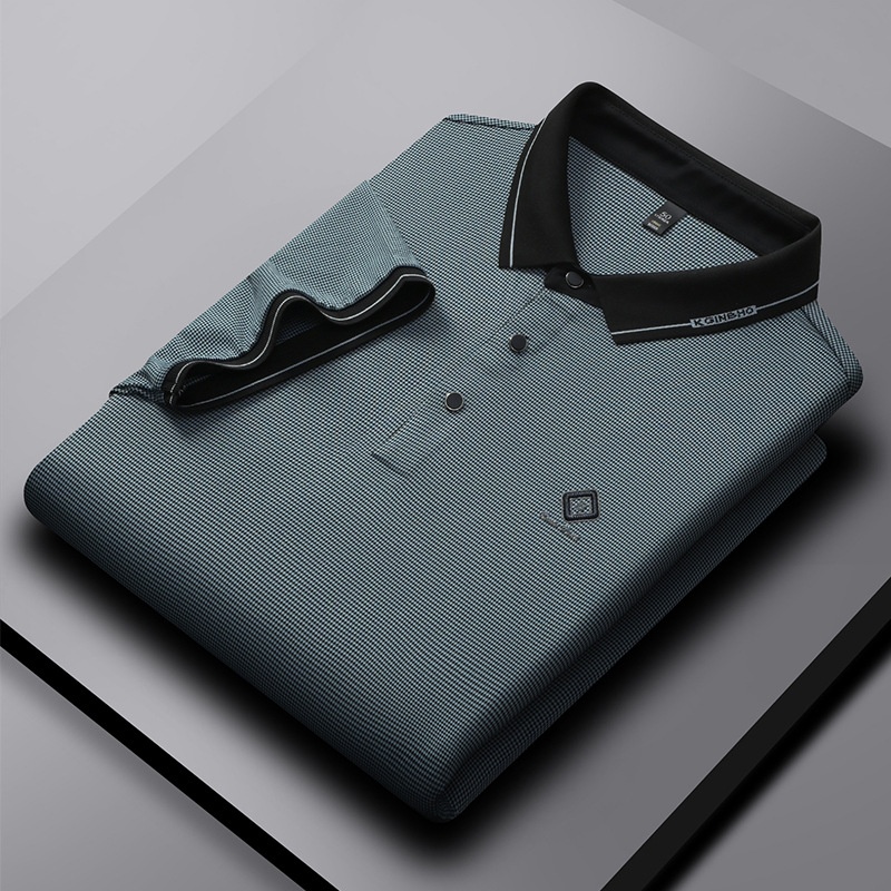 Men’s XL All-Season Short-Sleeved Business for Polo Shirt Ice Silk Cotton Button Color Contrast Lapel T-Shirt Top Solid Canvas