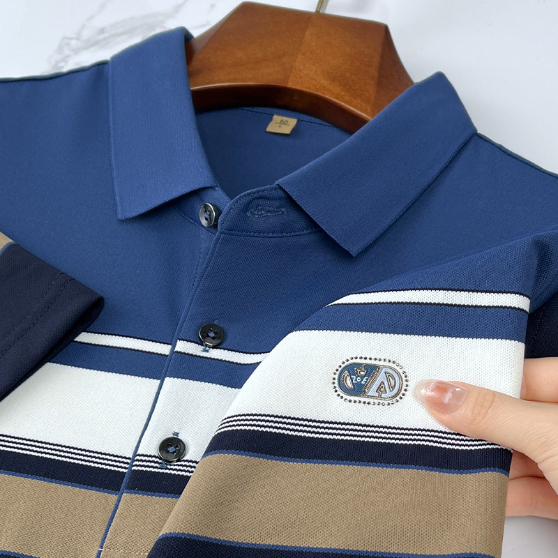 New Short-Sleeved Anti-Pilling Knitted Lapel for Men’s for Polo Shirts Comfortable T-Shirt for Middle-Aged