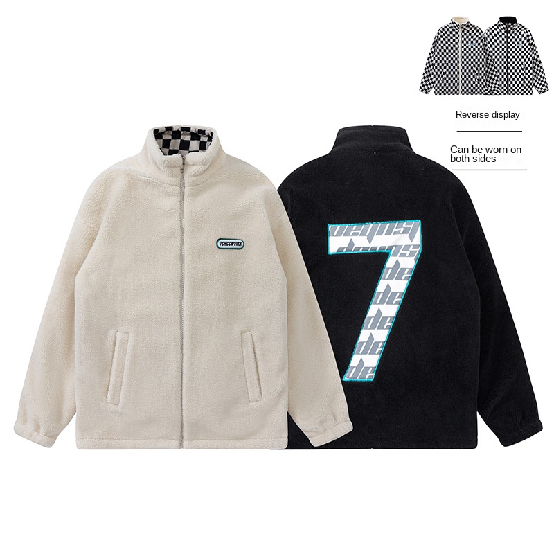 Autumn Winter Thickened Hooded Coat for Men Women Casual Double-Sided Lambskin Jacket Stand Fleece-Lined Cotton-Padded Warm Fur