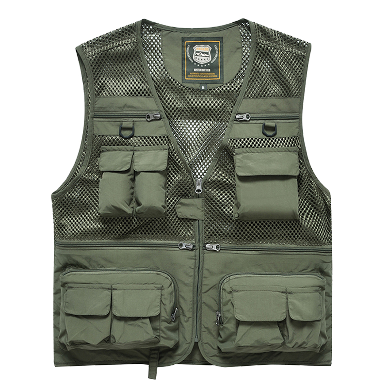 Men’s New Summer Casual Canvas Polyester Work Vest Multi-Pockets Zipper Closure for Outdoor Sports Horse Riding Clip Tooling