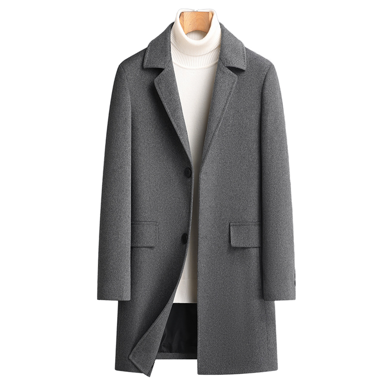 Men’s Slim-Fit Long Wool Coat for Autumn Winter Mid-Length Trench Outerwear Button Thickened Cotton Cashmere Plus Sizes Option