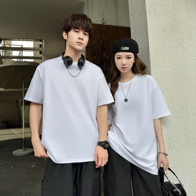 Casual Men’s T-Shirt 100% Pure Cotton Double Yarn Loose Neck Solid Color Short Sleeve Blank Knitted 3D Sailor Design Public