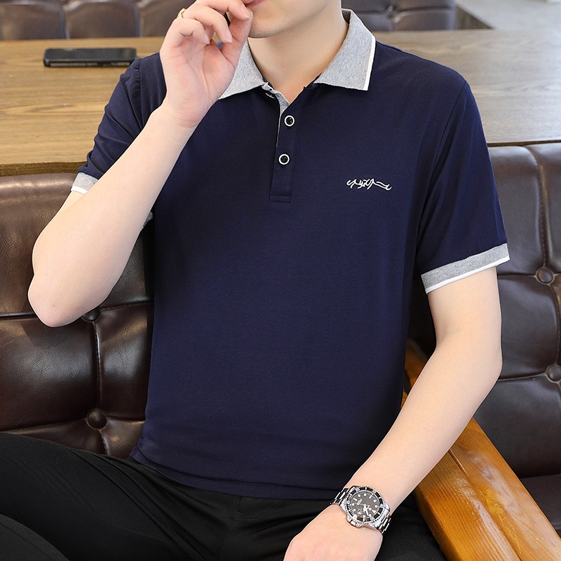 2025 New Slim Fit Men’s Business Jacket 230g Cotton Short Sleeve High-End Public Edition Lapel Middle-Aged Casual T-Shirt