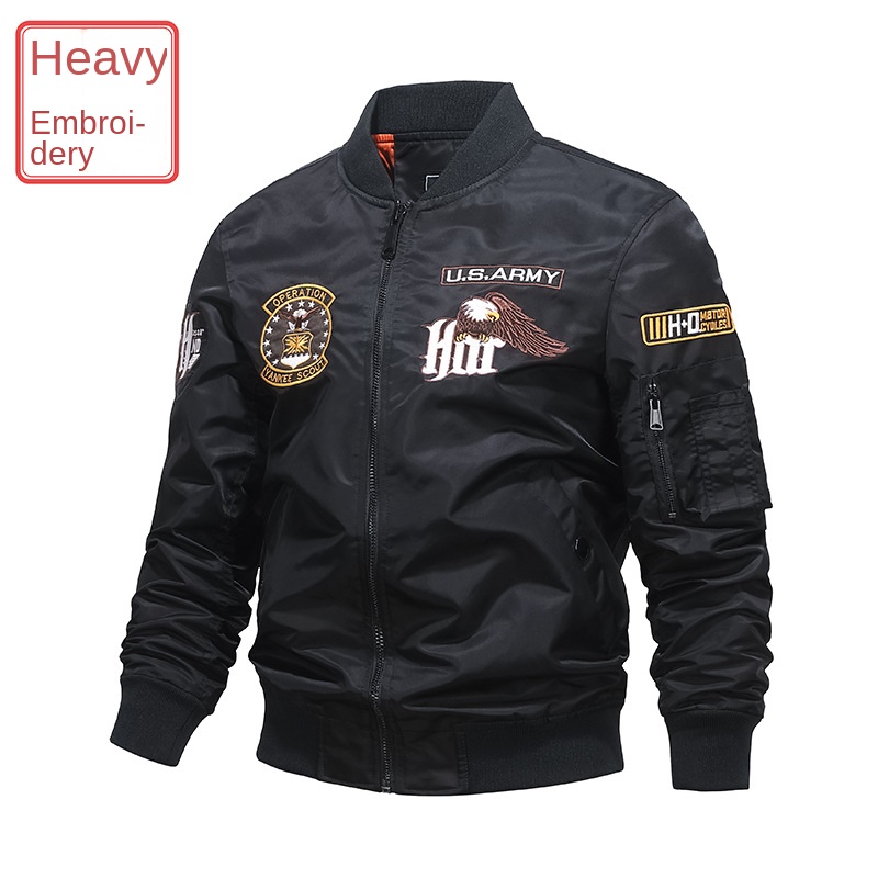 Men’s High Street Style Winter Bomber Jacket with Stand Collar Zipper Closure Dyed Leather Fleece and Nonwoven Weaving Method