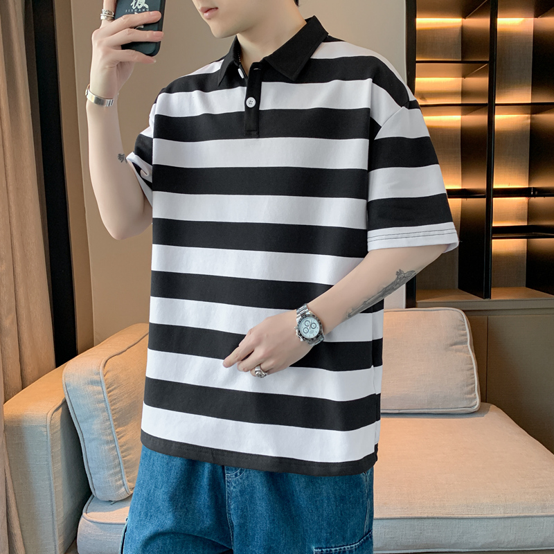 Men’s Quick-Drying Cotton for Polo Shirt Striped Casual Bee Business Design XL Half-Sleeved Short-Sleeved Options Knitted Fabric