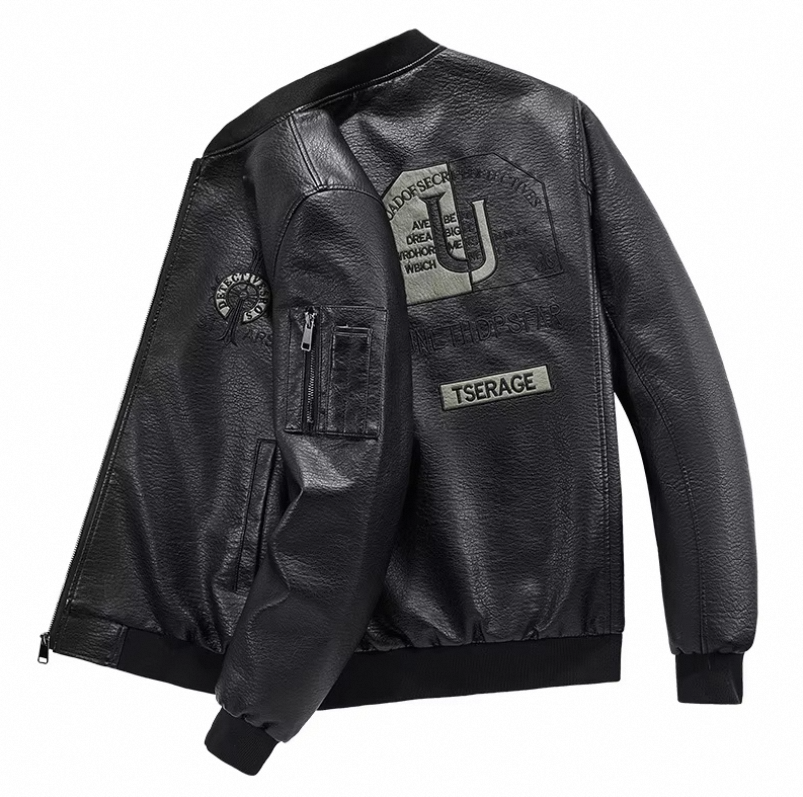Men’s ODM Casual Fleece-Lined Leather Bomber Jacket for Winter High Quality PU Material Autumn New Style with Generational Lapel