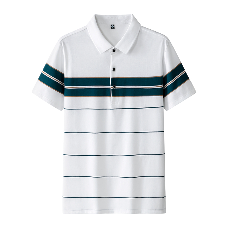 Men’s Trendy Slim for Polo Shirt Summer Striped High Half-Sleeve Casual Business T-Shirt with Button Decor Size XL