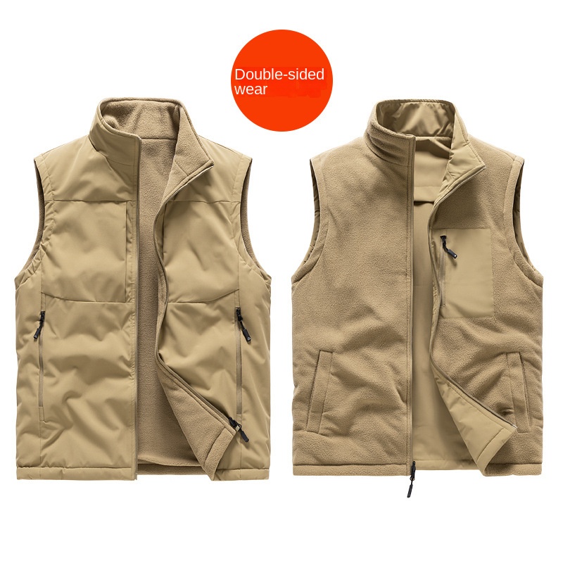 Men’s Zipper Closure Casual Waistcoat Down-Filled Multi-Pockets Trendy Mandarin Logo Workwear Vest for Spring Autumn Winter