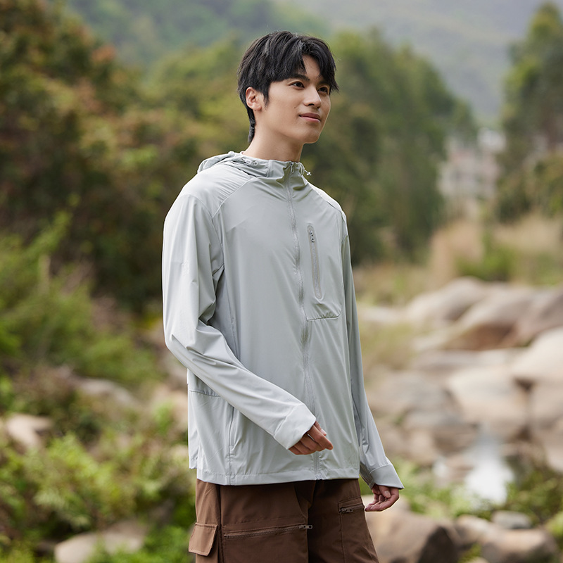 Men’s UPF50 Ice Silk Outdoor Jacket Lightweight Breathable Hooded Coat Zipper UV Protection for Summer Waterproof Material