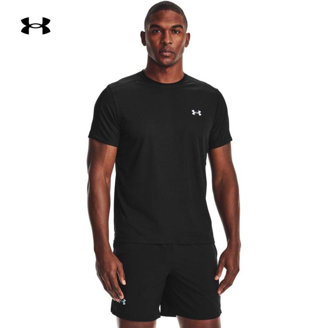 5180038050 Ice Silk T-shirt by Under Armour for Men, 60% cotton, 35% nylon, 5% spandex, black and white, M – 5XL size range.