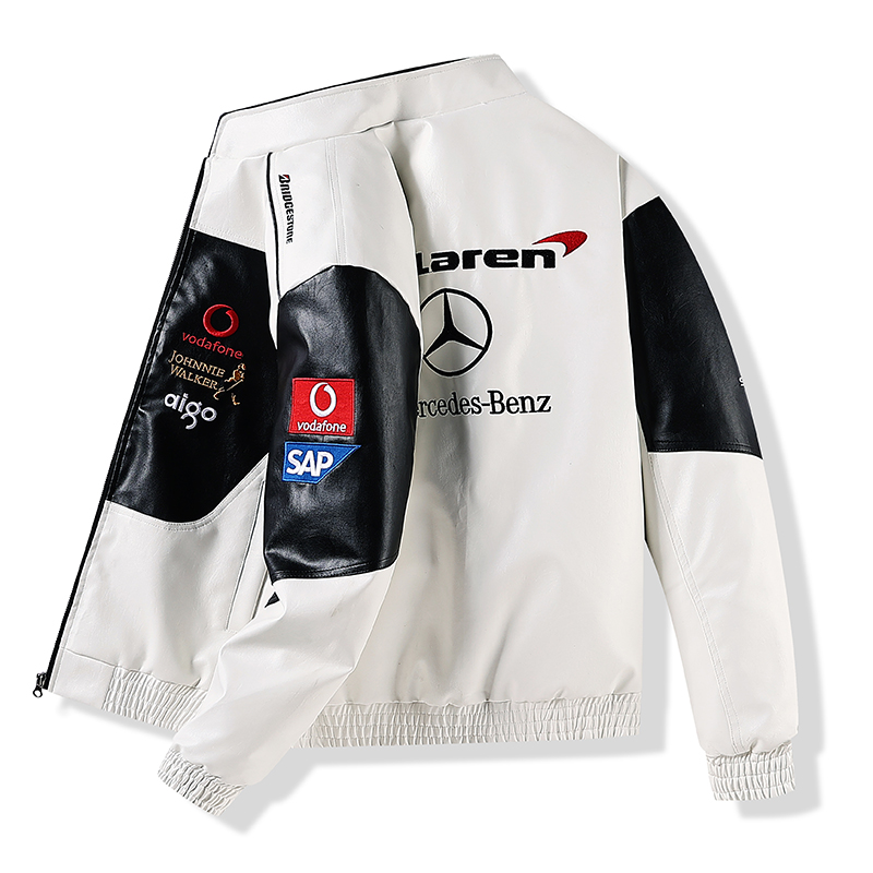 Mercedes-benz embroidered leather jacket 2025 Spring Fashion brand leather jacket men thickened PU leather motorcycle jacket Baseball cotton jacket Couple cotton coat Motorcycle flight jacket