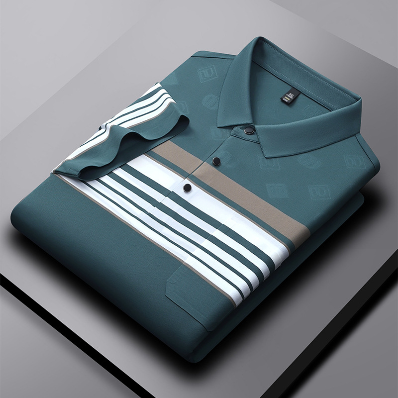 Paul Men’s Summer Trendy Half Sleeve for Polo Shirt New Casual Embroidered Print Knitted Fabric Loose Fit Ice Silk Top Any Size