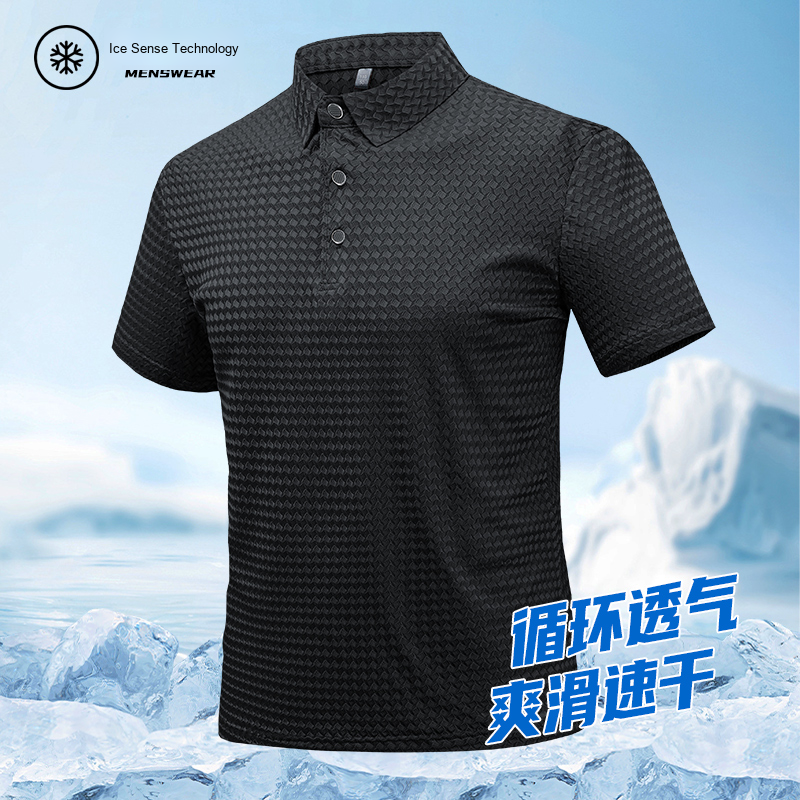 Summer American-Style Men’s High-End Cross-Border for Polo Tops Thin Ice Silk Short-Sleeved Casual Cotton Jersey Lapel Polos Sol