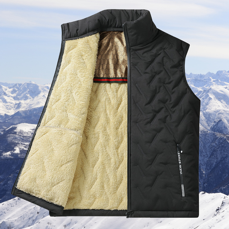 Men’s Formal Ultrasonic Velvet Graphene Waistcoat Horse Clip Collar Padded Lamb Cross-Border Winter Tooling Breathable for