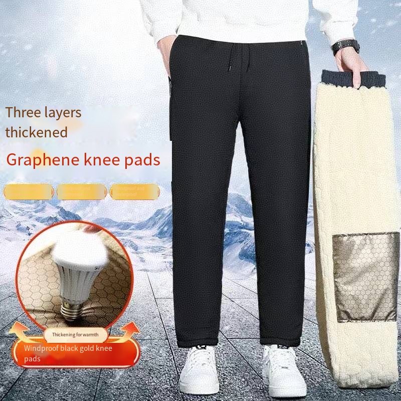 Men’s Casual Winter Cotton Pants Graphene Knee Pads Fleece-Lined for Outdoor Mid All-Match Sheep Loose Fit New Arrival for