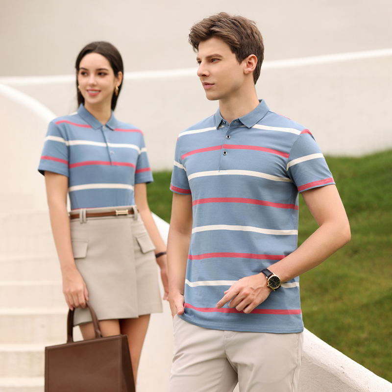 Men’s European Style Summer Polo Shirt Striped Pure Cotton Slim-Fit Short-Sleeved T-Shirt Fashionable Lapel Design Sea Soul Plus