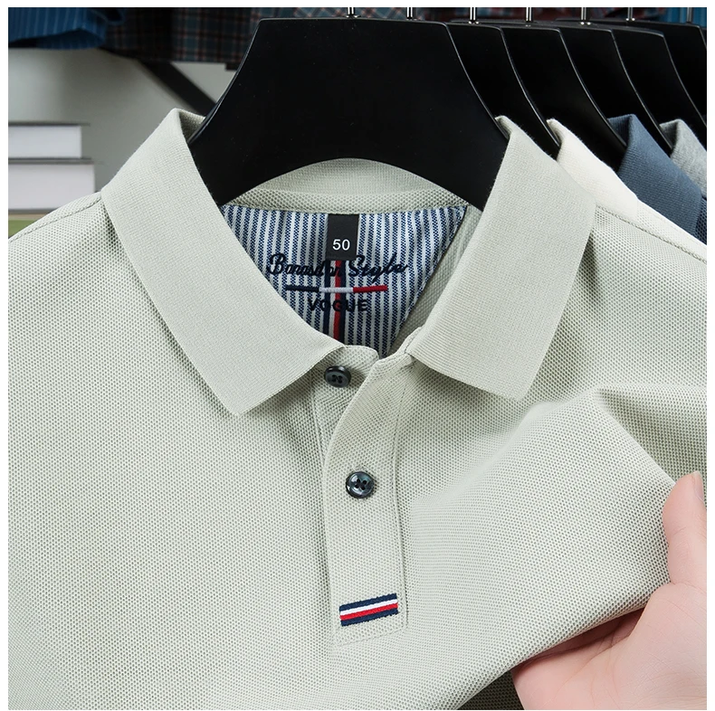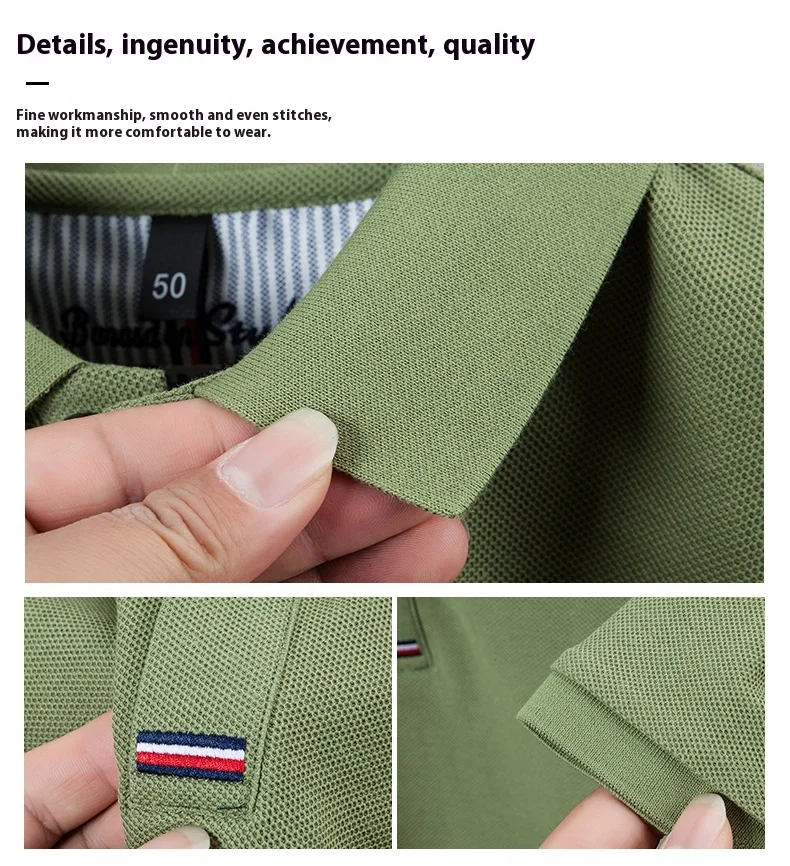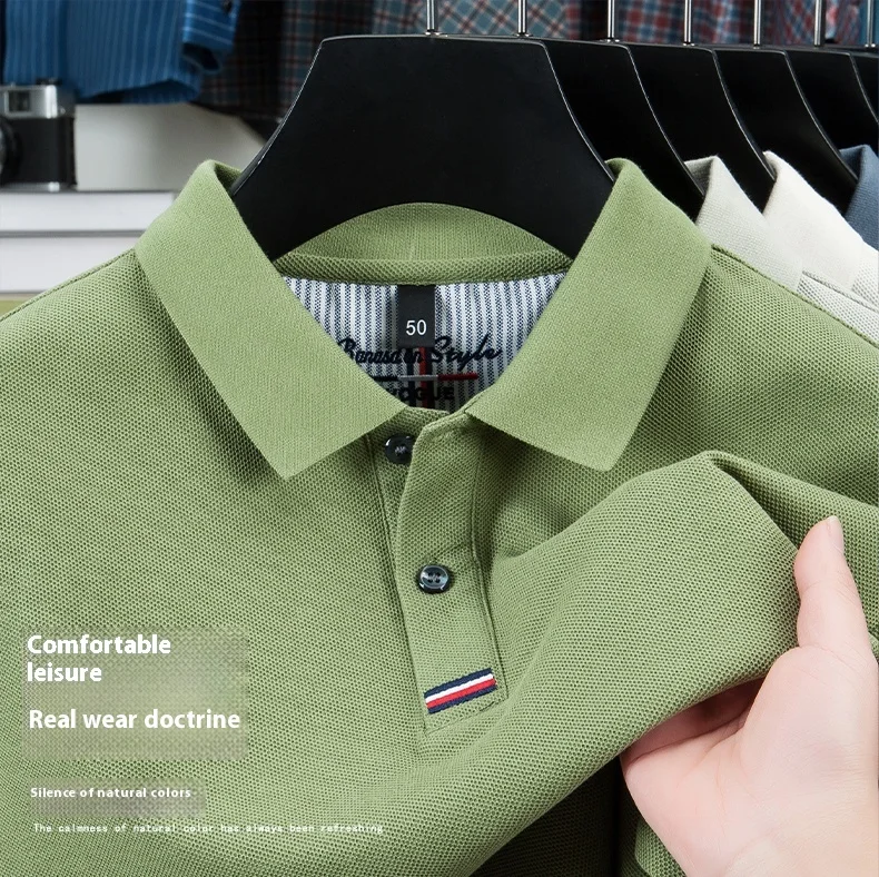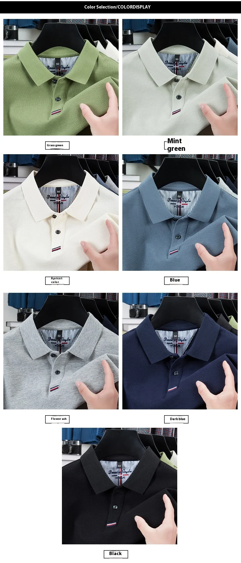 100% Cotton Men’s Summer Polo Shirt Short-Sleeved Business Casual Style Solid Thin Knitted Fabric Anti-Pilling Short Golf