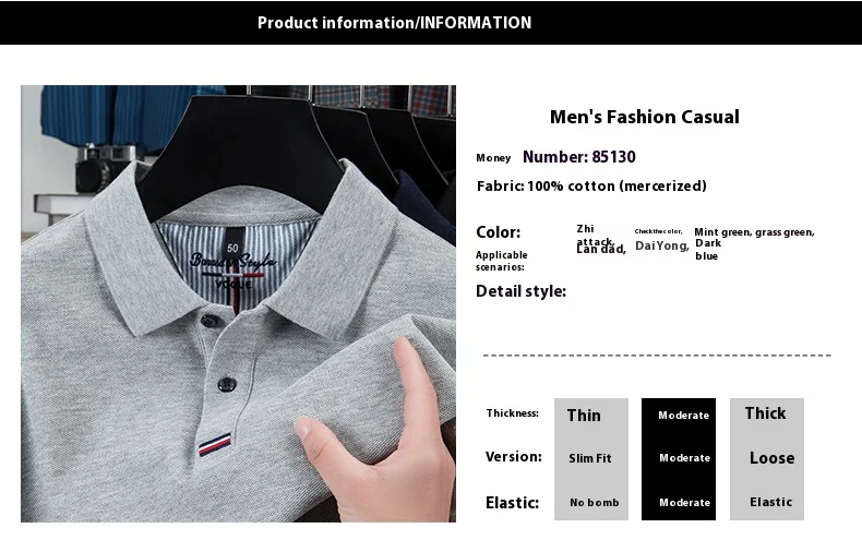 Be the first to review “100% Cotton Men’s Summer Polo Shirt Short-Sleeved Business Casual Style Solid Thin Knitted Fabric Anti-Pilling Short Golf”