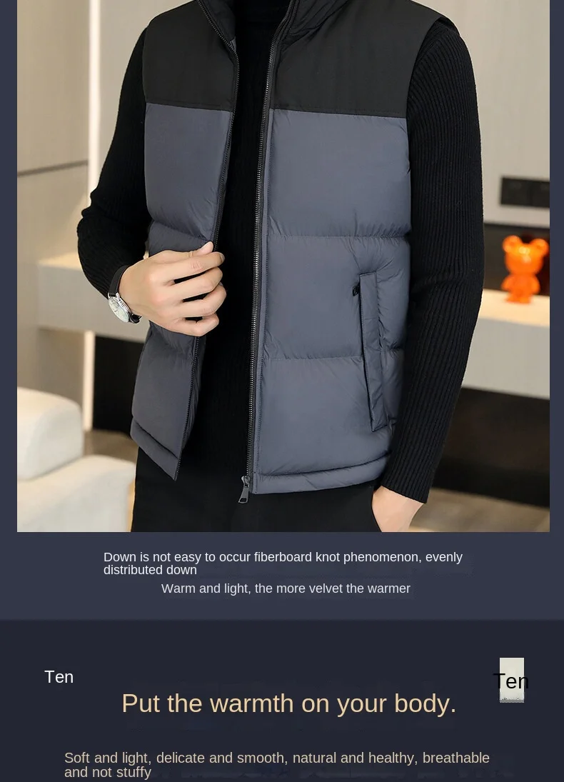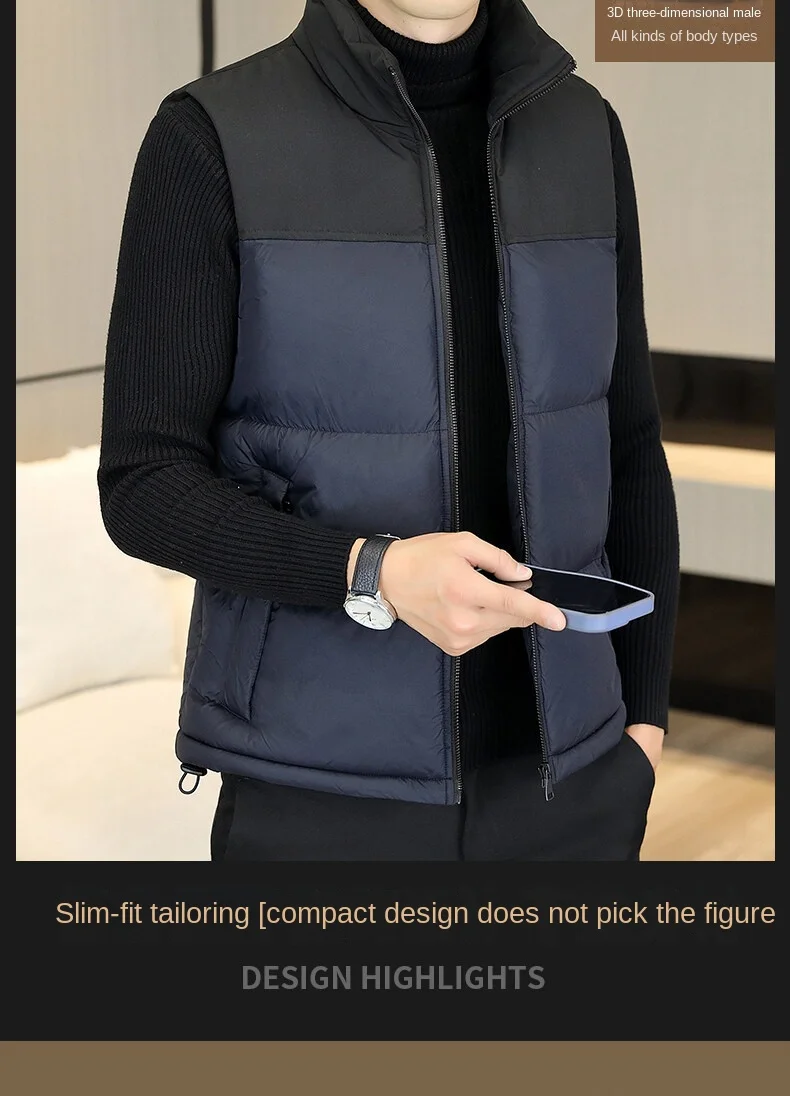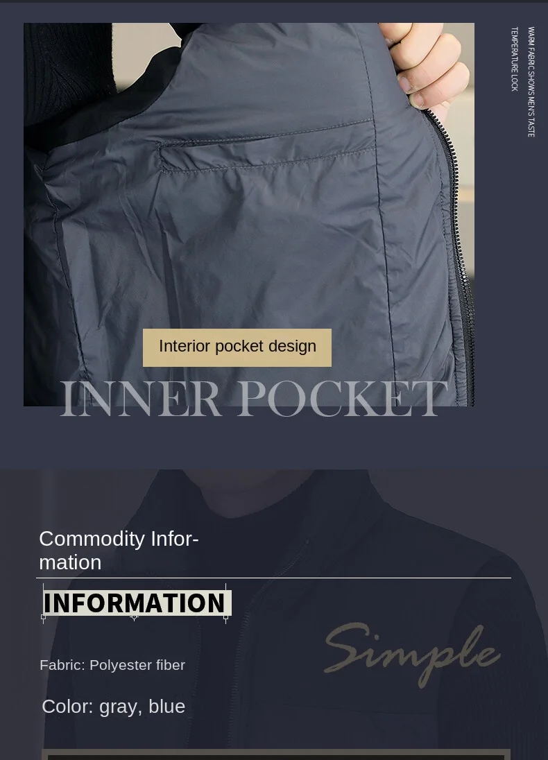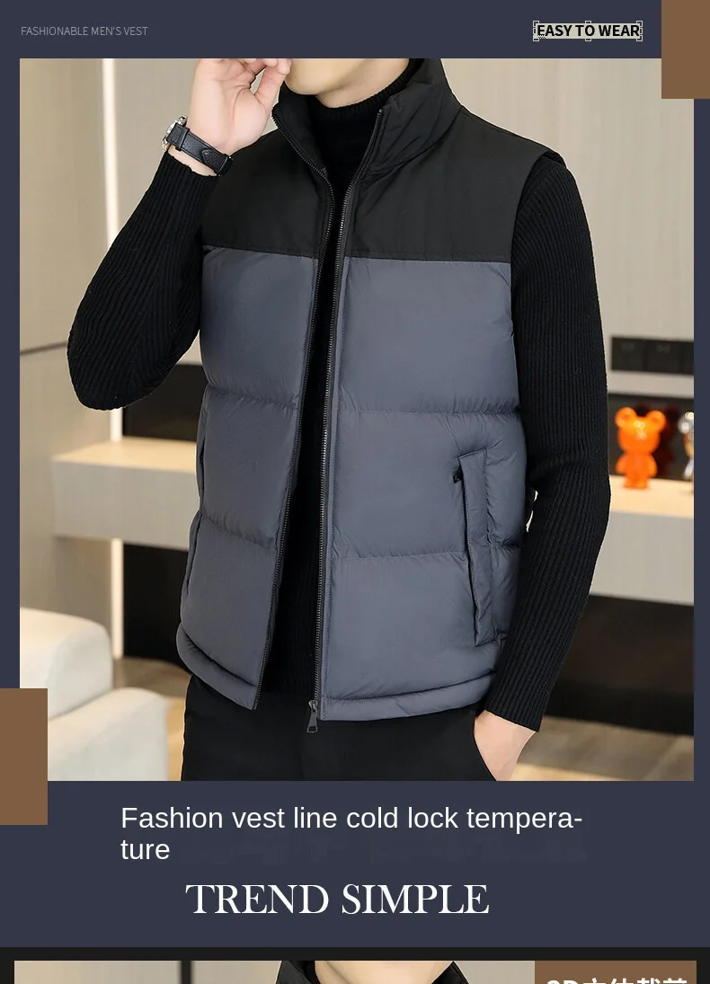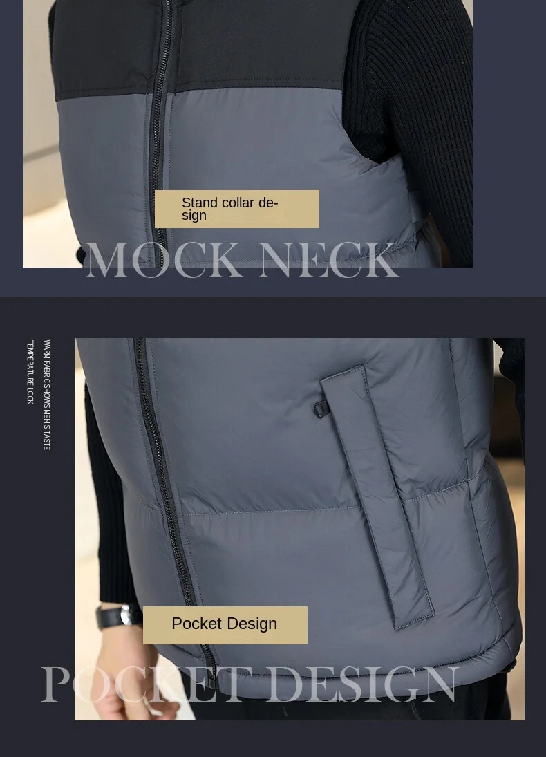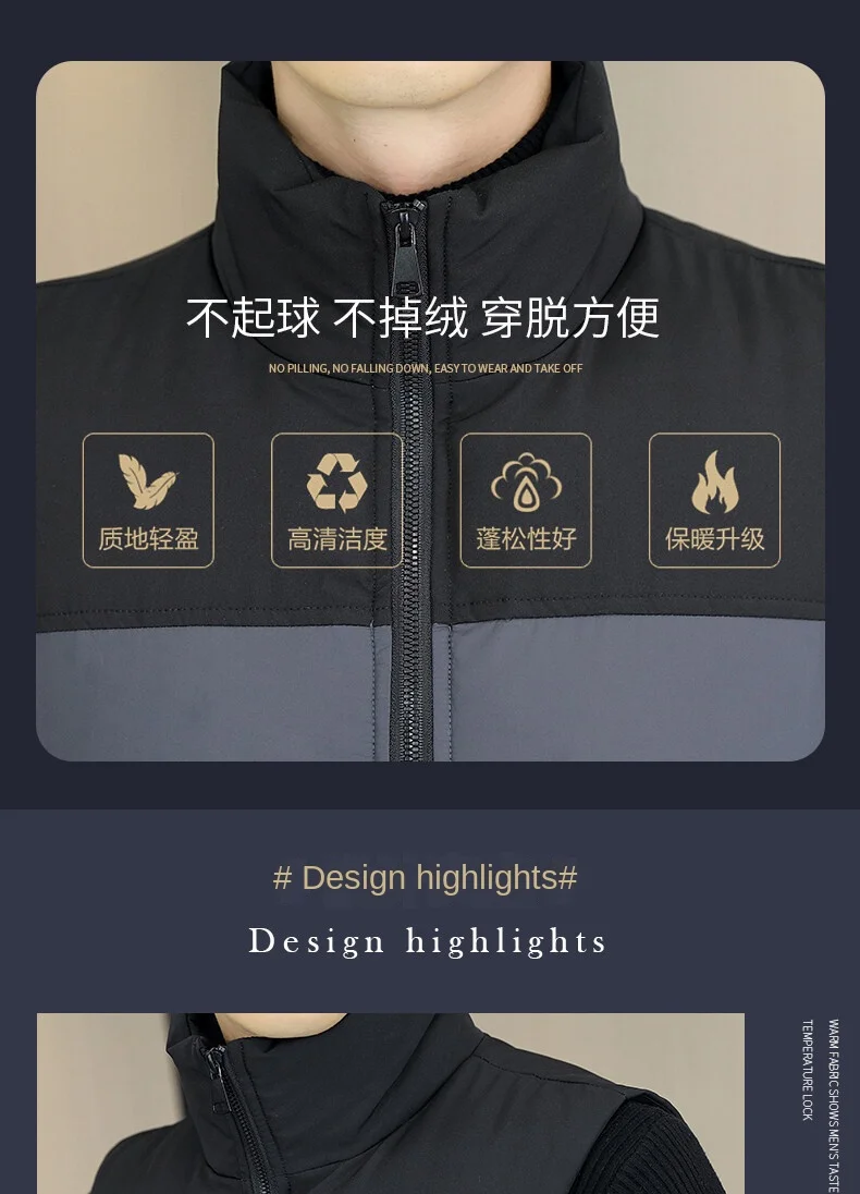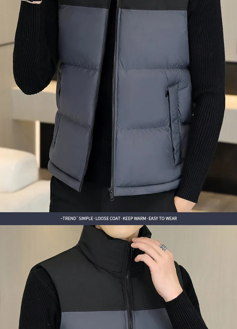 2022 Men’s Casual Waistcoat Fashionable Thickened Cotton Collar Jacket Zipper Closure Plus Size for Autumn Winter Canvas Fabric