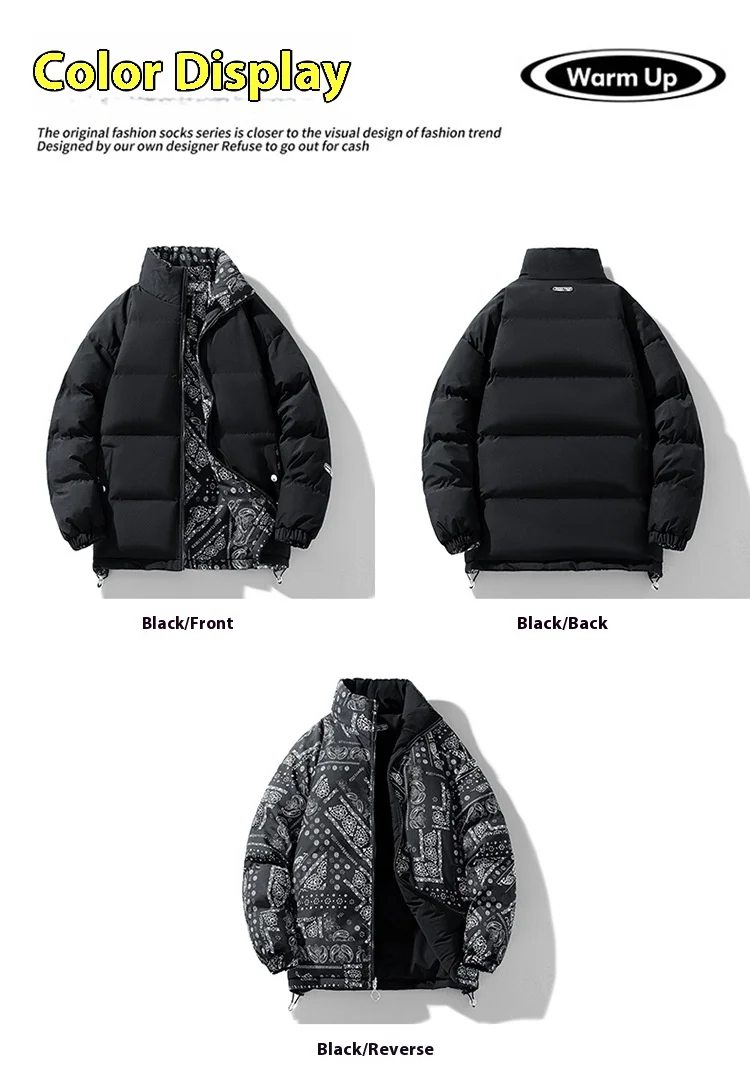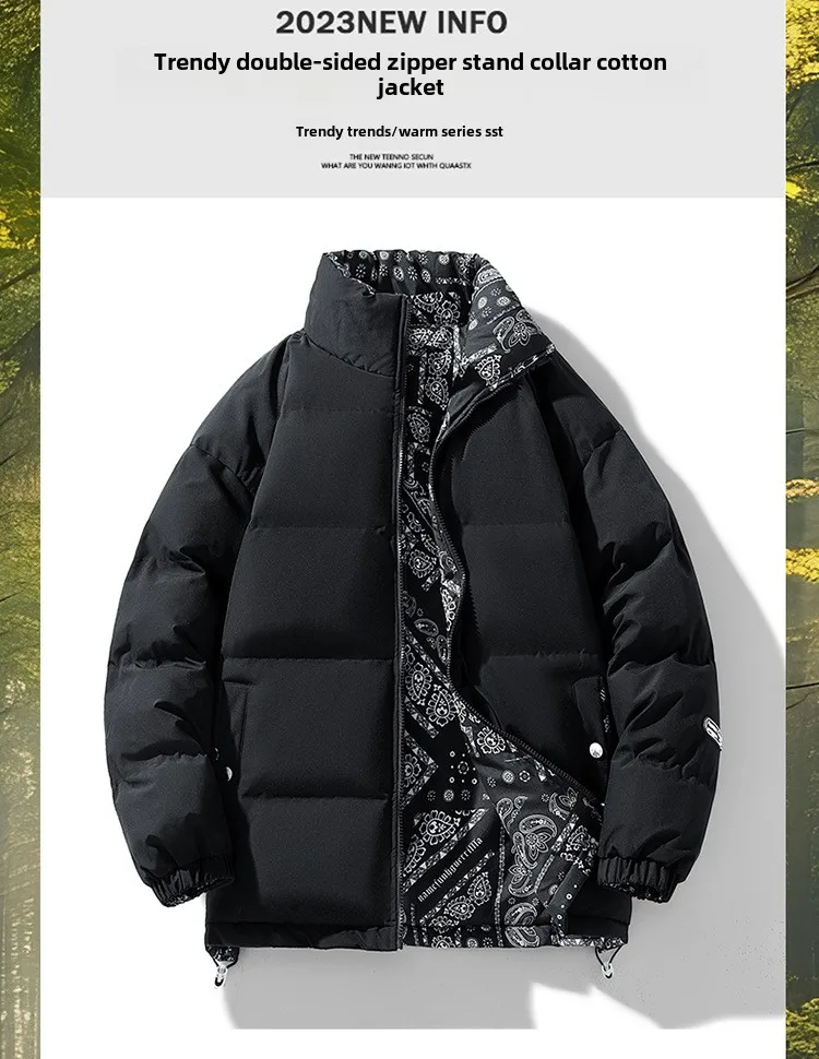 2023 Fall Winter Men’s Coats Double-Sided Cotton Fashionable Brand Japanese Casual Zipper Thickened Bread Outwear Winter Wear