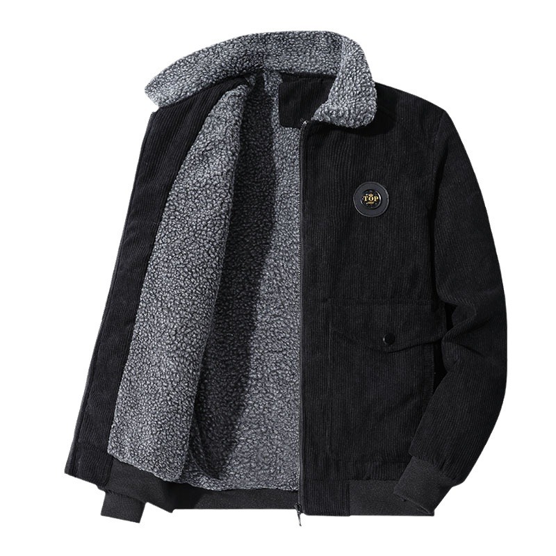 2023 Men’s Corduroy Coat New Fleece-Lined Jacket Autumn Winter Lamb Wool Cotton-Padded Coat Woven Leather Fabric Foreign Trade