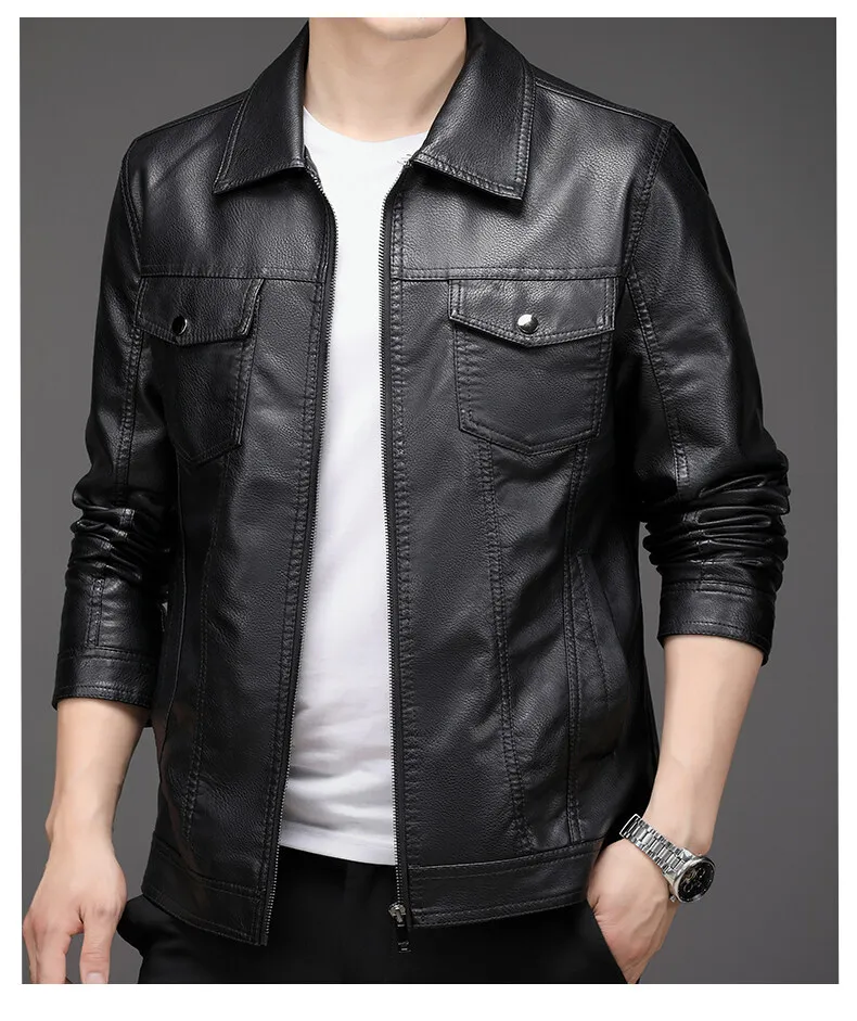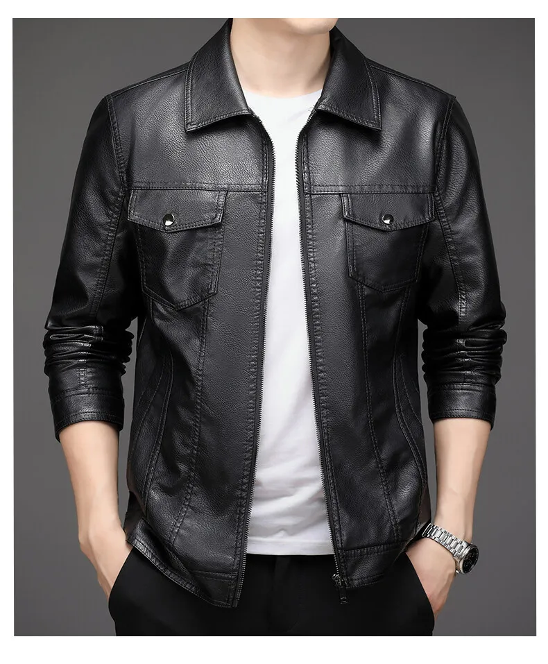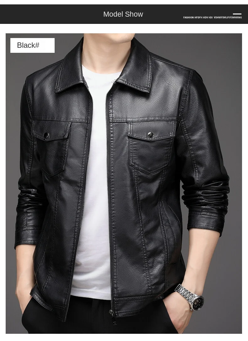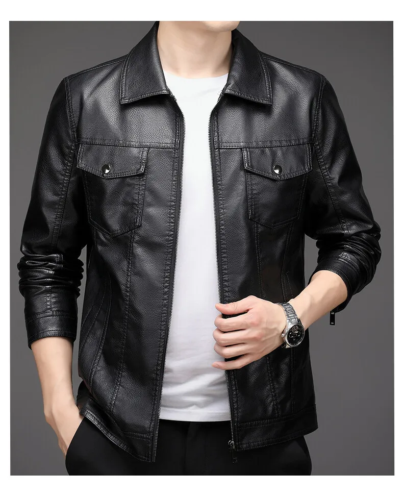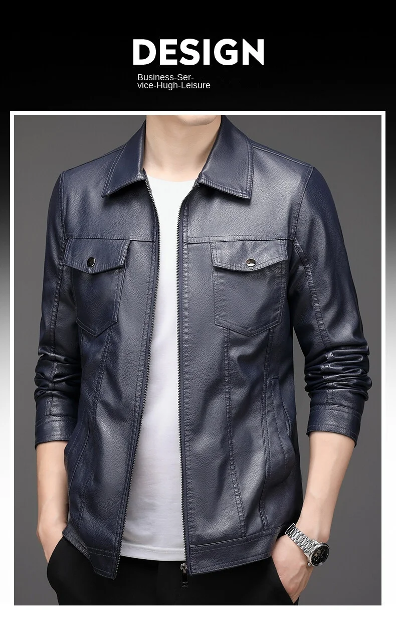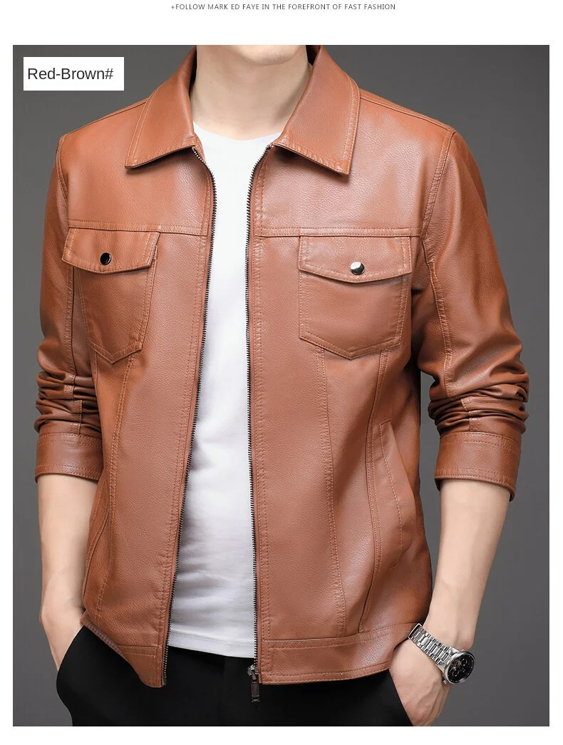 2023 Men’s New Korean Style PU Bomber Jacket Fashionable Zipper Closure Canvas Sheep Skin Spring Autumn Winter Size XL for