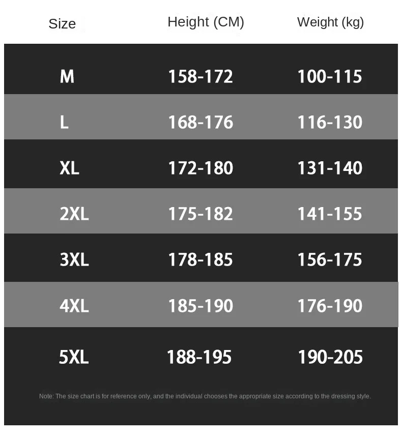 M, L, XL, 2XL, 3XL, 4XL, 5XL