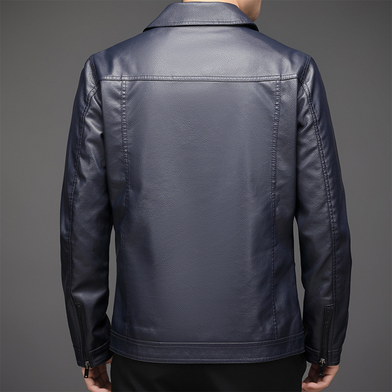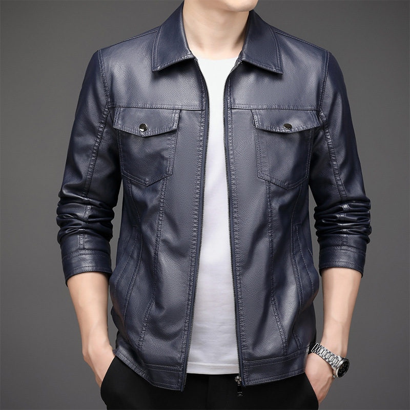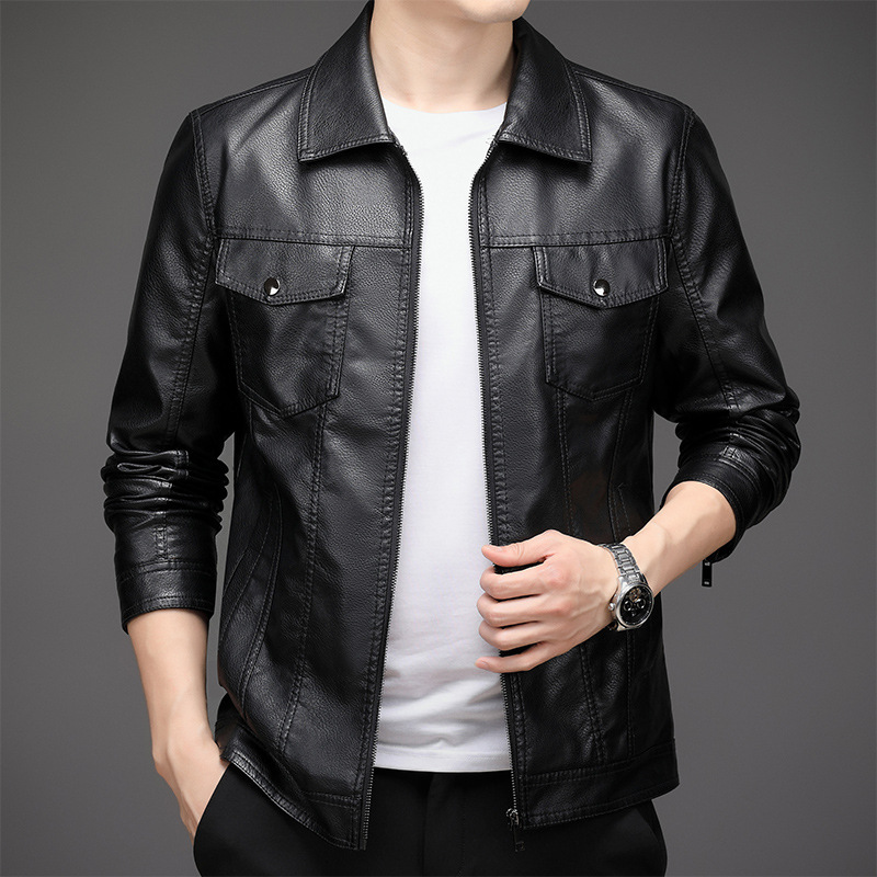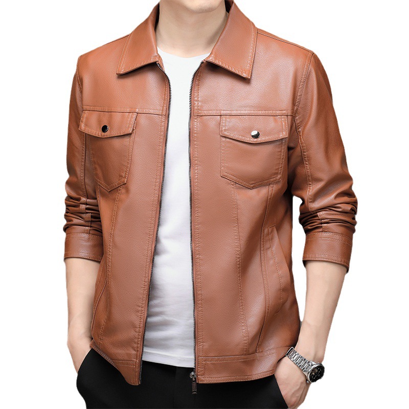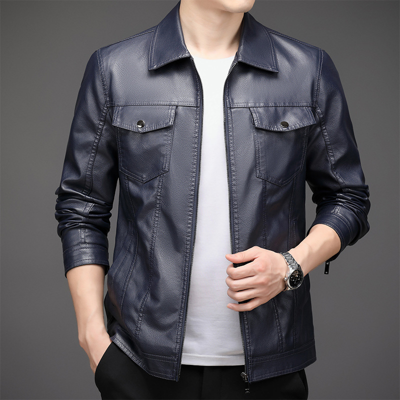 2023 Men’s New Korean Style PU Bomber Jacket Fashionable Zipper Closure Canvas Sheep Skin Spring Autumn Winter Size XL for