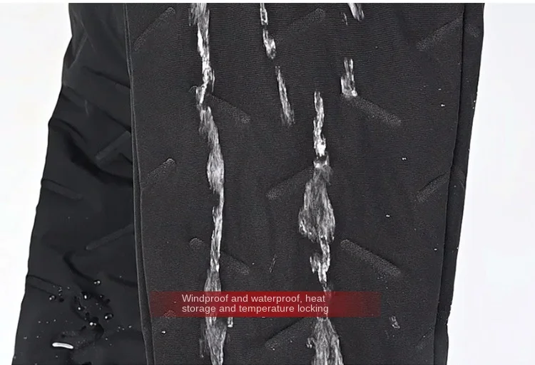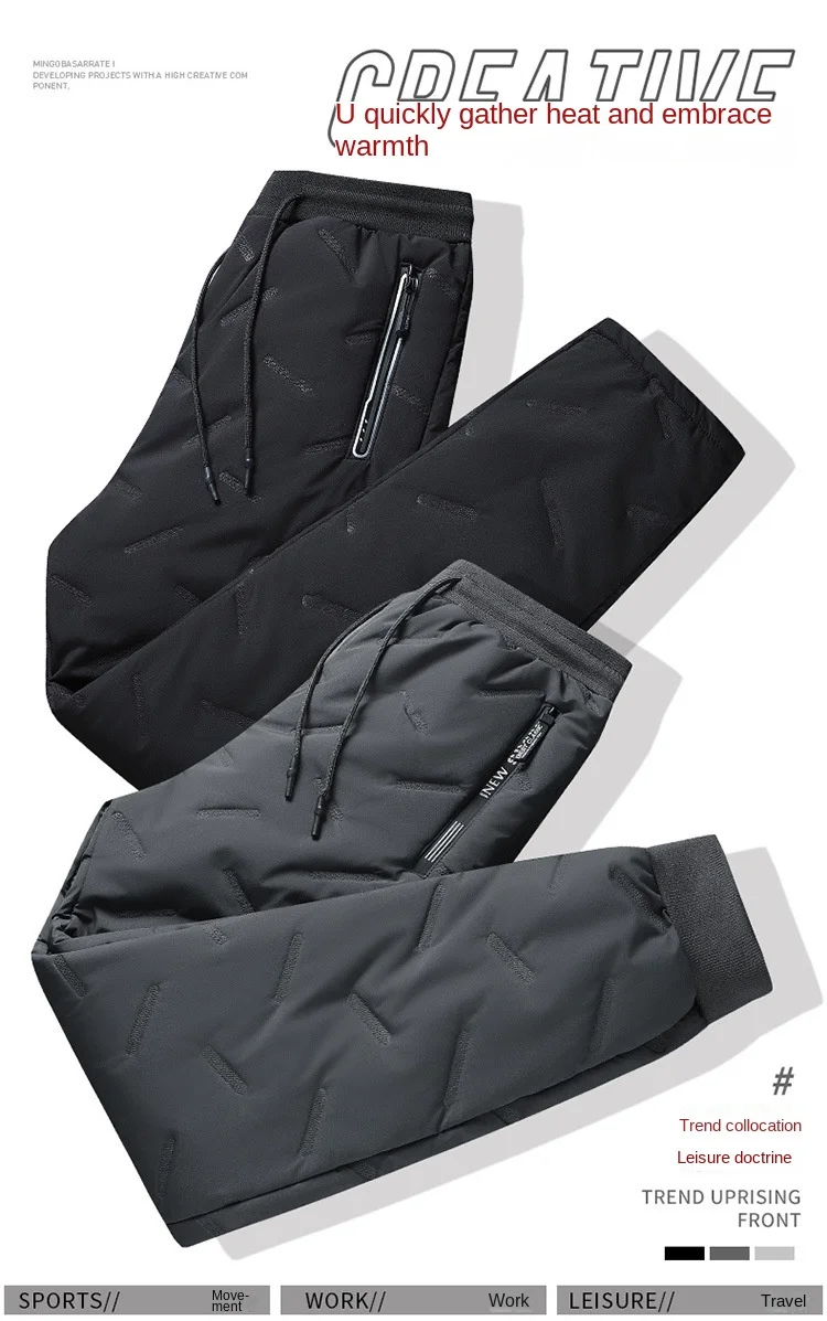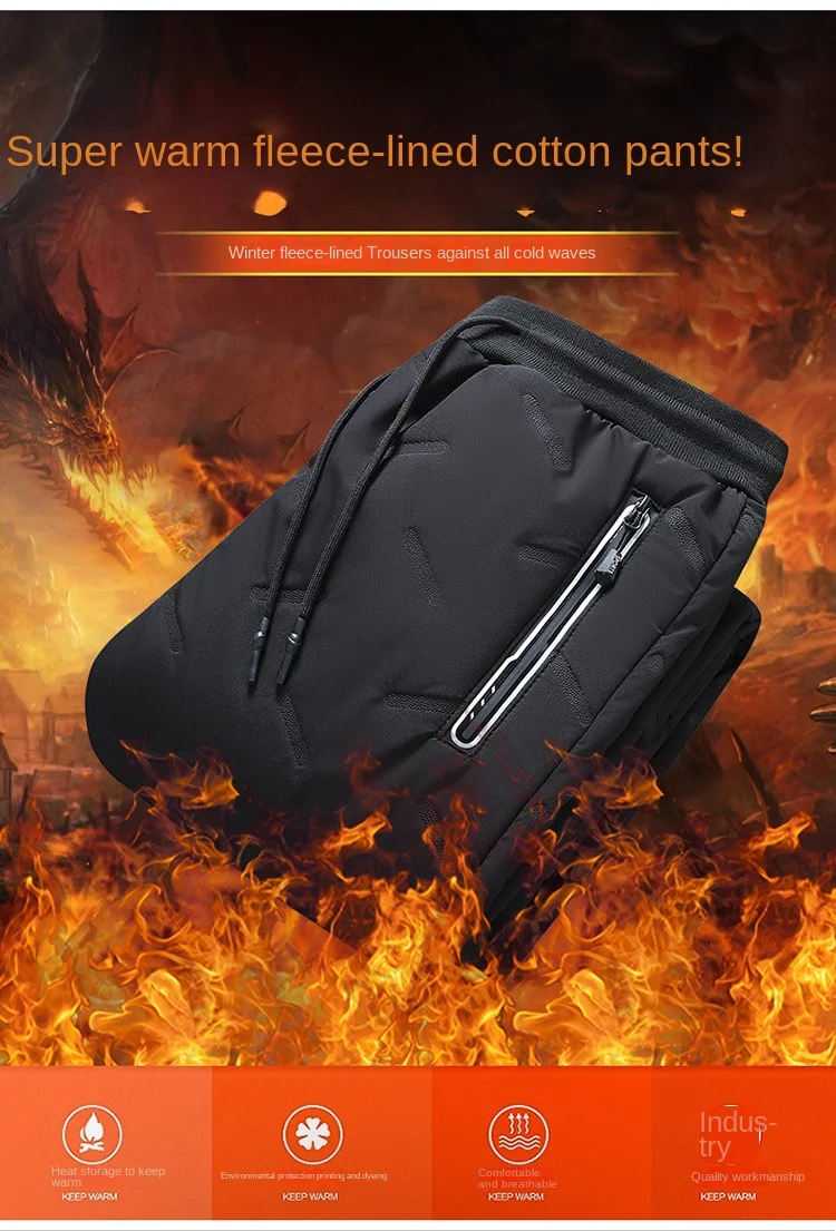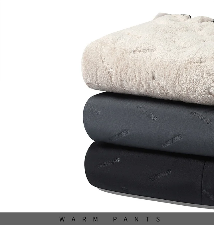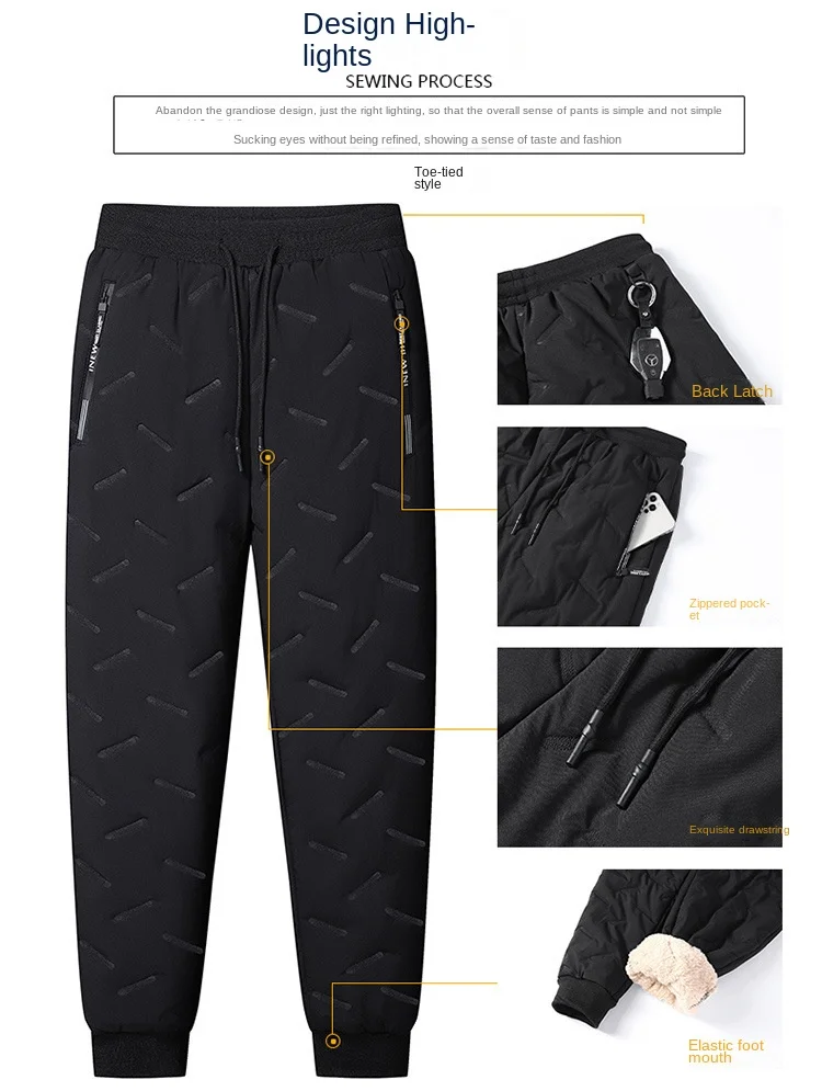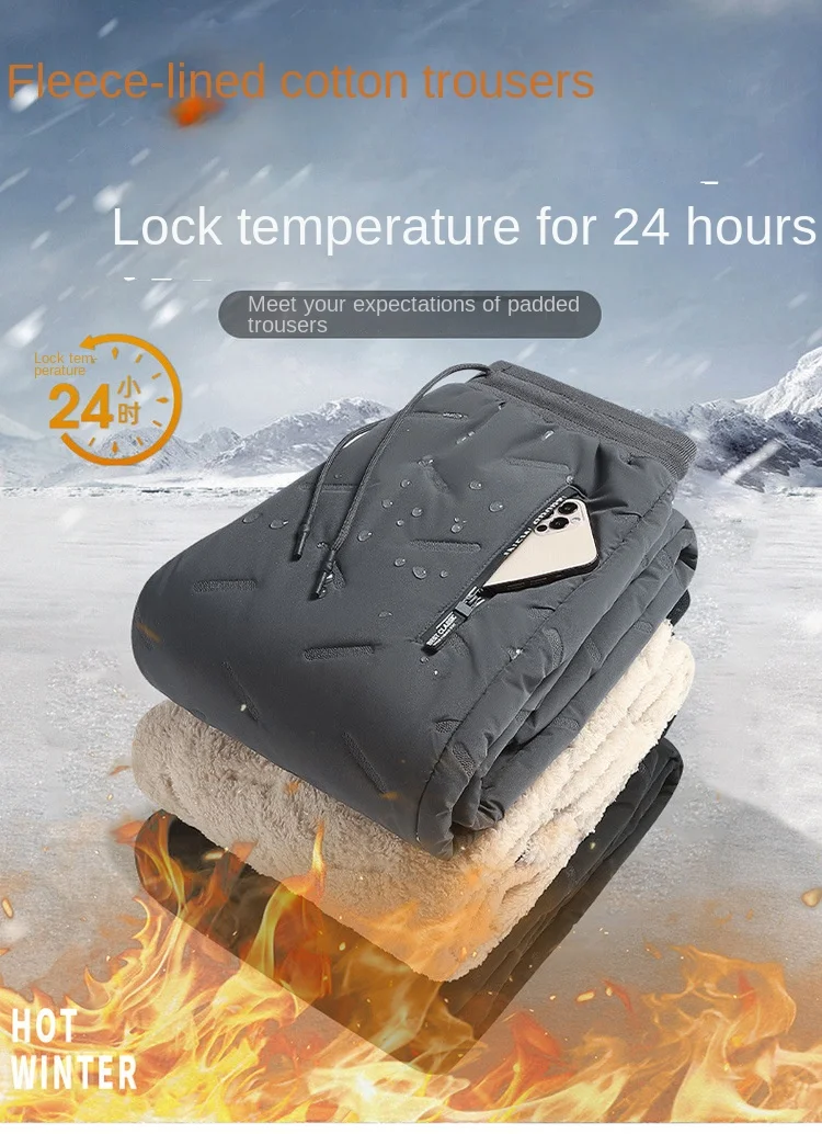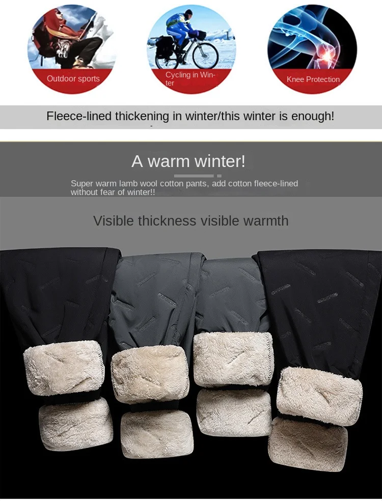 2023 Winter Men’s Casual Long Straight Style Pants XL Size Mid Elastic Thickened Lamb Fleece Lining Three-Proof Windproof