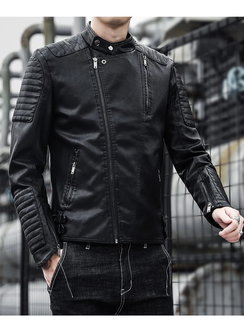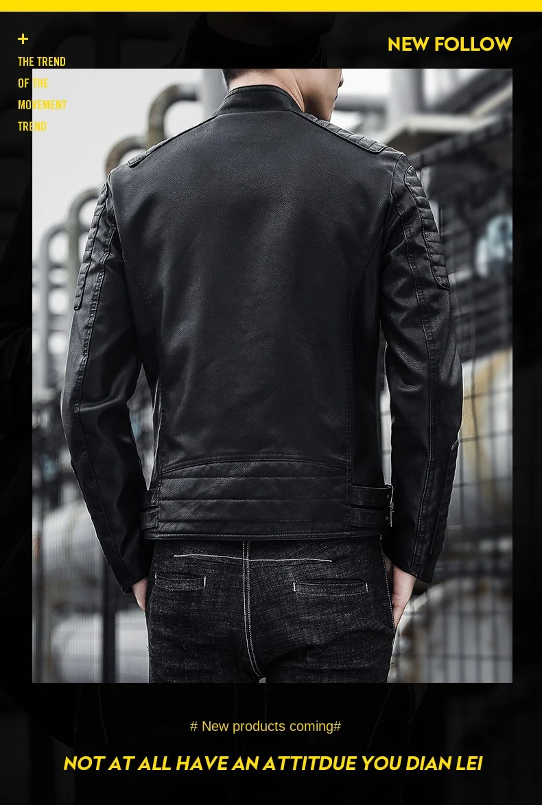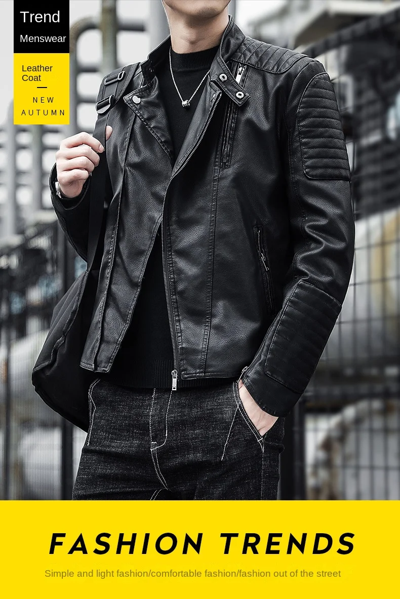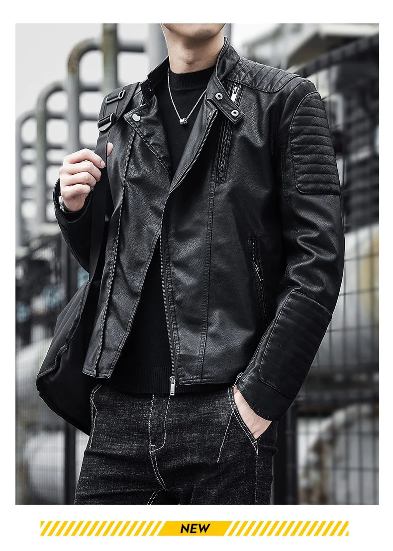 2024 Autumn British Fashion PU Leather Men’s Motorcycle Bomber Jacket ODM Logo Turn Collar Coat New 3D Crocheted Pattern Winter
