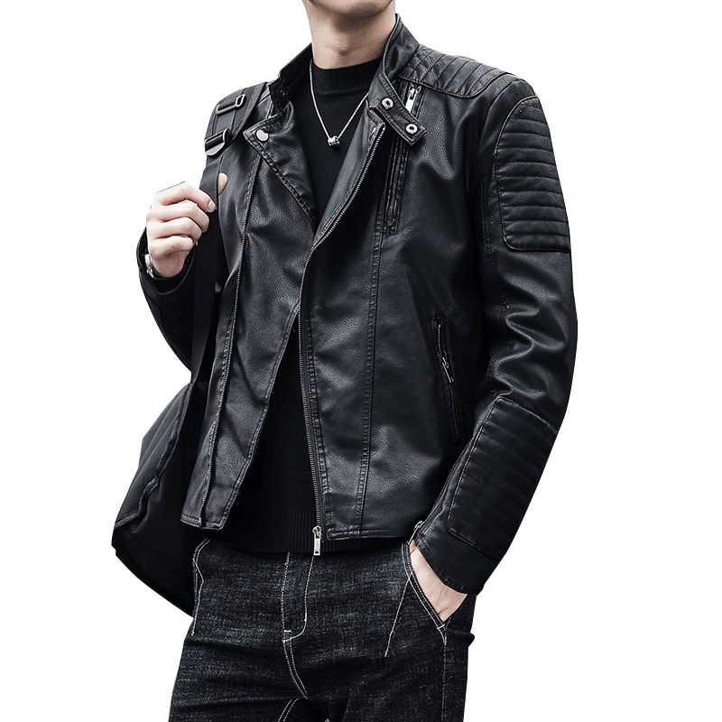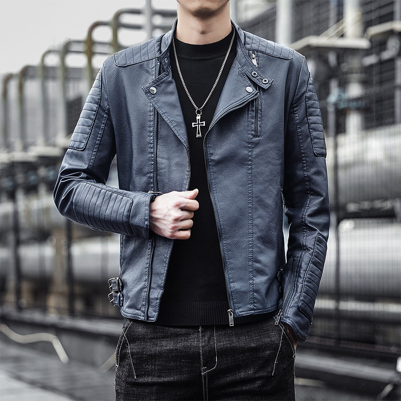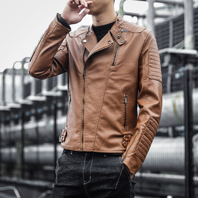 2024 Autumn British Fashion PU Leather Men’s Motorcycle Bomber Jacket ODM Logo Turn Collar Coat New 3D Crocheted Pattern Winter