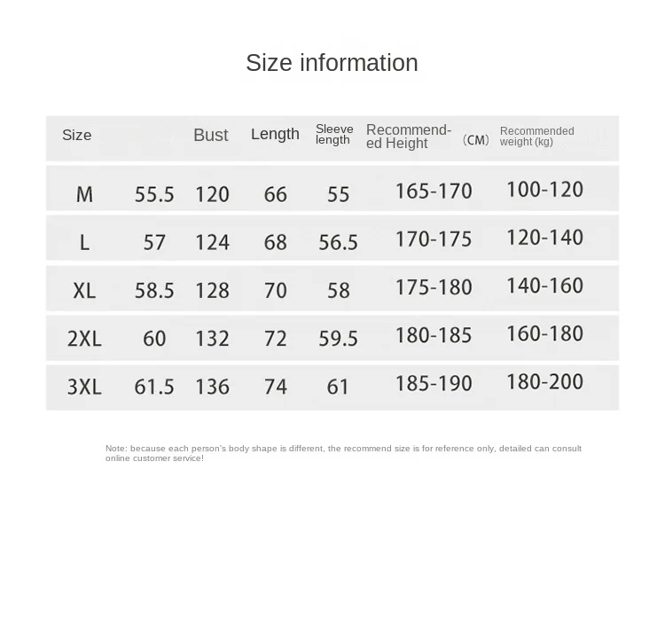 | Size | M, L, XL, 2XL, 3XL |