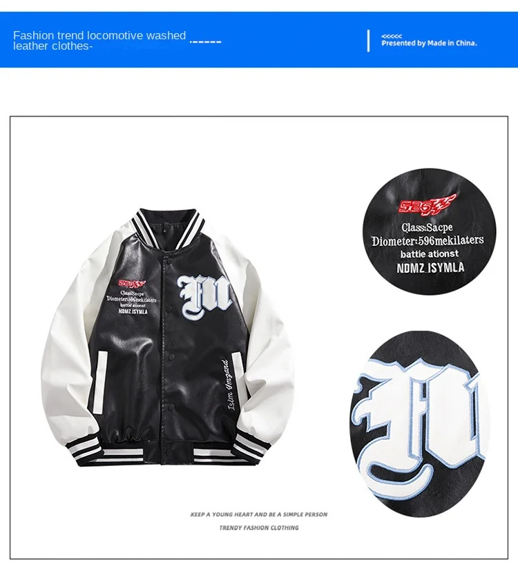 2024 Autumn New Men’s All-Season All-match Varsity Jacket Embroidered Leather Coat Sheep Bike Clothing Winter Versatile Baseball