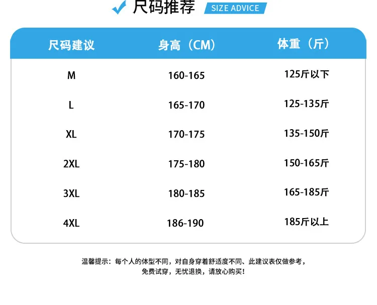 | Size | M, L, XL, 2XL, 3XL, 4XL |