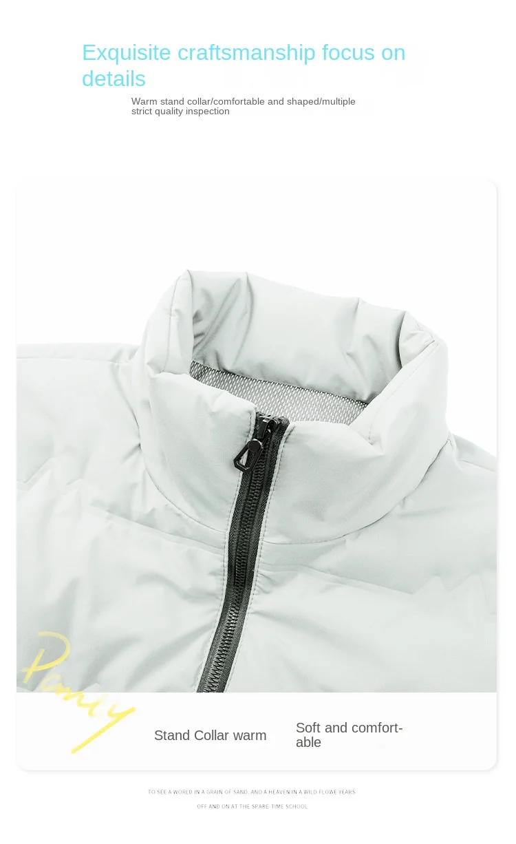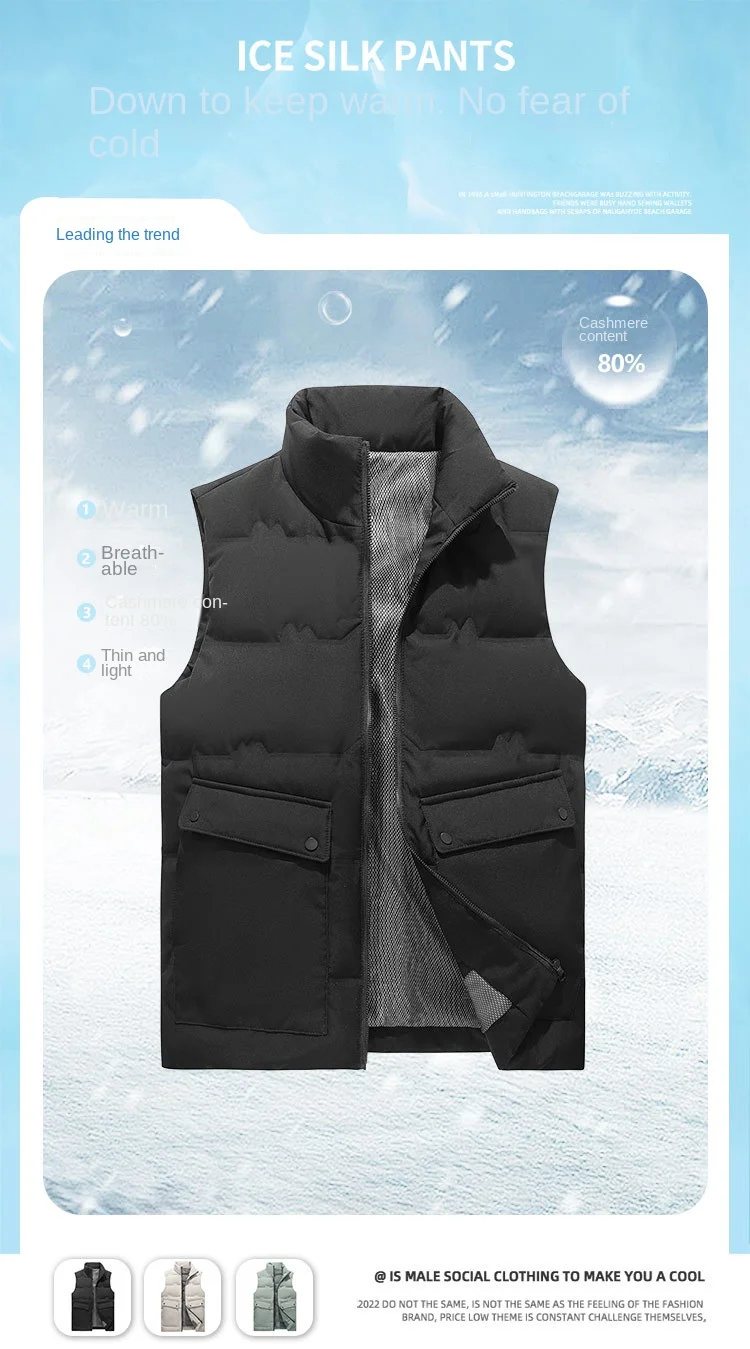 2024 Autumn Winter Collection Men’s Thickened Nylon Vest Solid Color Fashionable Zipper Closure Warm Casual Style for Young