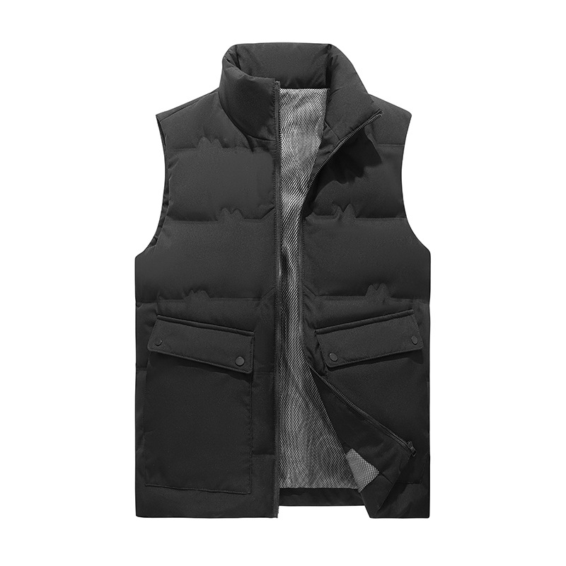 2024 Autumn Winter Collection Men’s Thickened Nylon Vest Solid Color Fashionable Zipper Closure Warm Casual Style for Young